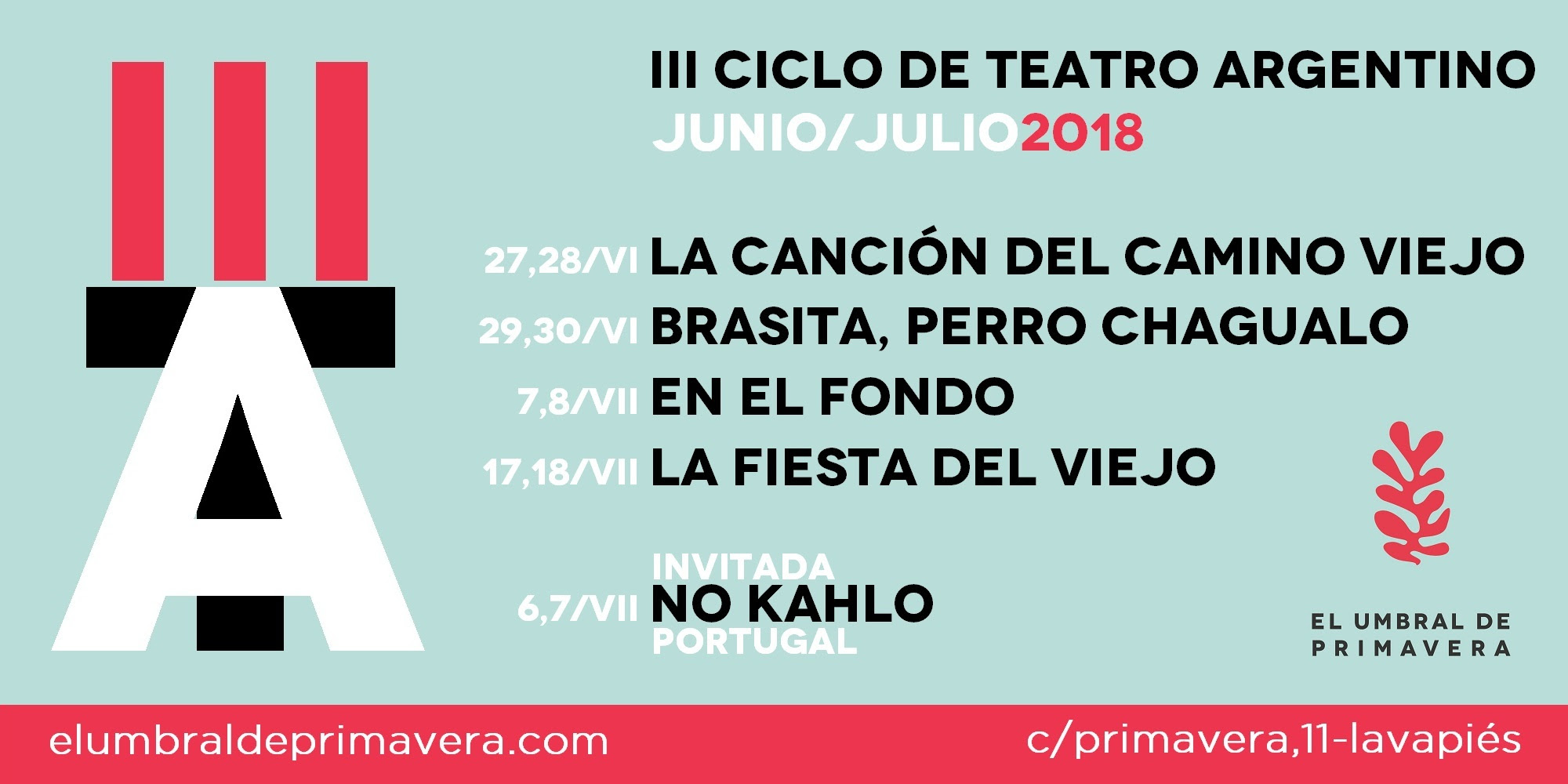 Los fuertes vínculos -afectivos, personales, teatrales- que tiene El Umbral de Primavera con Argentina son innegables. Gracias a ellos podemos ver acá el mejor teatro hecho allá, tal y como comentan Viviana López Doynel e Israel Giraldo, gestores de El Umbral e impulsores de este certamen: «el Teatro Argentino es un referente del panorama actual en Occidente. Nuestra sala parte de la base de conjugar su programación a las corrientes actuales en permanente búsqueda de lenguajes a través de equipos o colectivos comprometidos con su tiempo. Es así como se inicia en 2015 este Ciclo, para seguir creando vínculos maravillosos con Argentina que nos sigue enriqueciendo año a año, sin olvidar que una parte del equipo fundador de este espacio viene de allí».